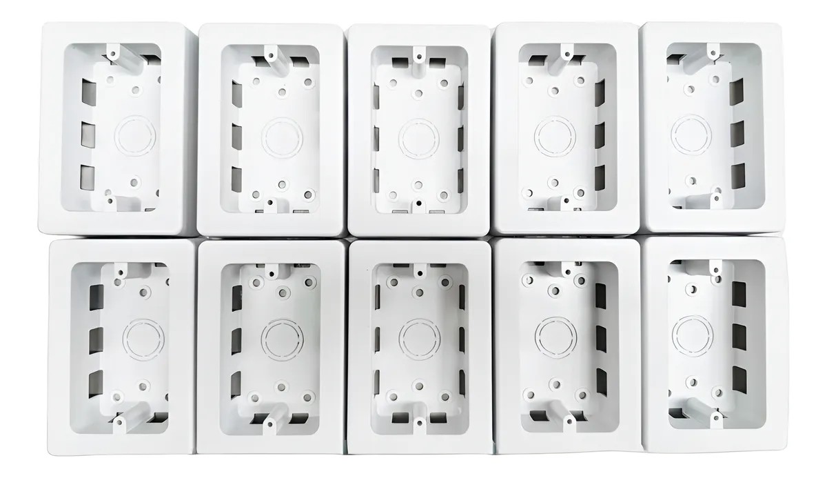 10 Piezas de Caja Universal con Fondo de PVC en color blanco son elementos esenciales para las instalaciones eléctricas y de redes de datos, diseñadas para ser empotrados en paredes y servir como puntos de montaje para dispositivos. Fabricadas en PVC resistente, estas cajas proporcionan un espacio seguro y aislado para alojar mecanismos como interruptores, enchufes, o conectores de red RJ45, permitiendo la conexión y organización del cableado dentro de la estructura. Su uso asegura que todos los puntos de acceso queden protegidos y alineados, facilitando la instalación de placas de acabado y logrando un resultado final limpio y profesional en cualquier entorno doméstico o comercial con un discreto color blanco.