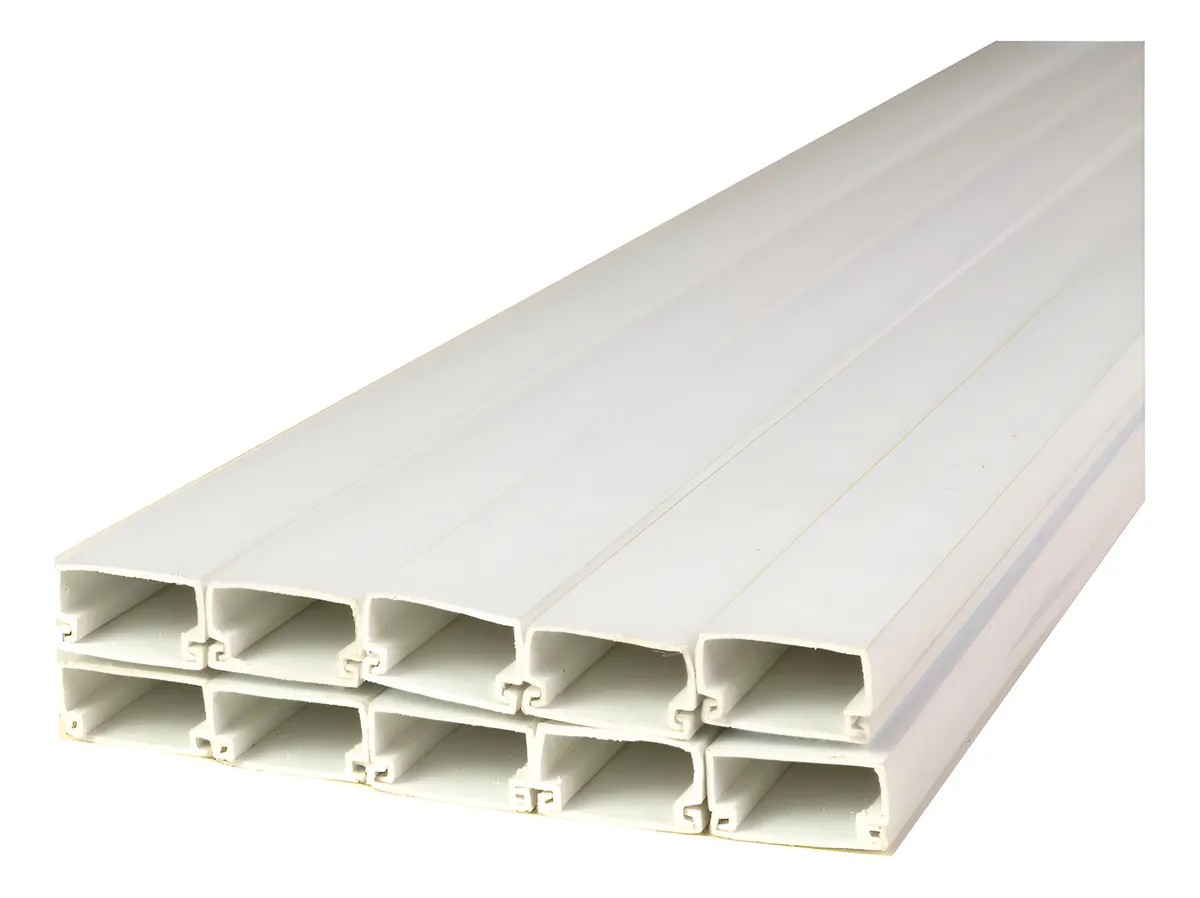 Canaleta de PVC para Cable se presenta en un paquete de 10 piezas, con una longitud de 1 metro para cada una y dimensiones transversales de 1 centímetro de alto por 2 centímetros de ancho (10×20 mm), con un acabado en color blanco. Este producto está diseñado para la protección y conducción organizada de cables y alambres en instalaciones eléctricas y de datos visibles en interiores. Fabricada en material PVC resistente, esta canaleta proporciona una cubierta sólida que resguarda el cableado de daños físicos y contribuye a la estética del entorno, siendo una solución práctica y de fácil manejo para mantener el cableado ordenado y fuera de la vista en hogares, oficinas o locales comerciales.